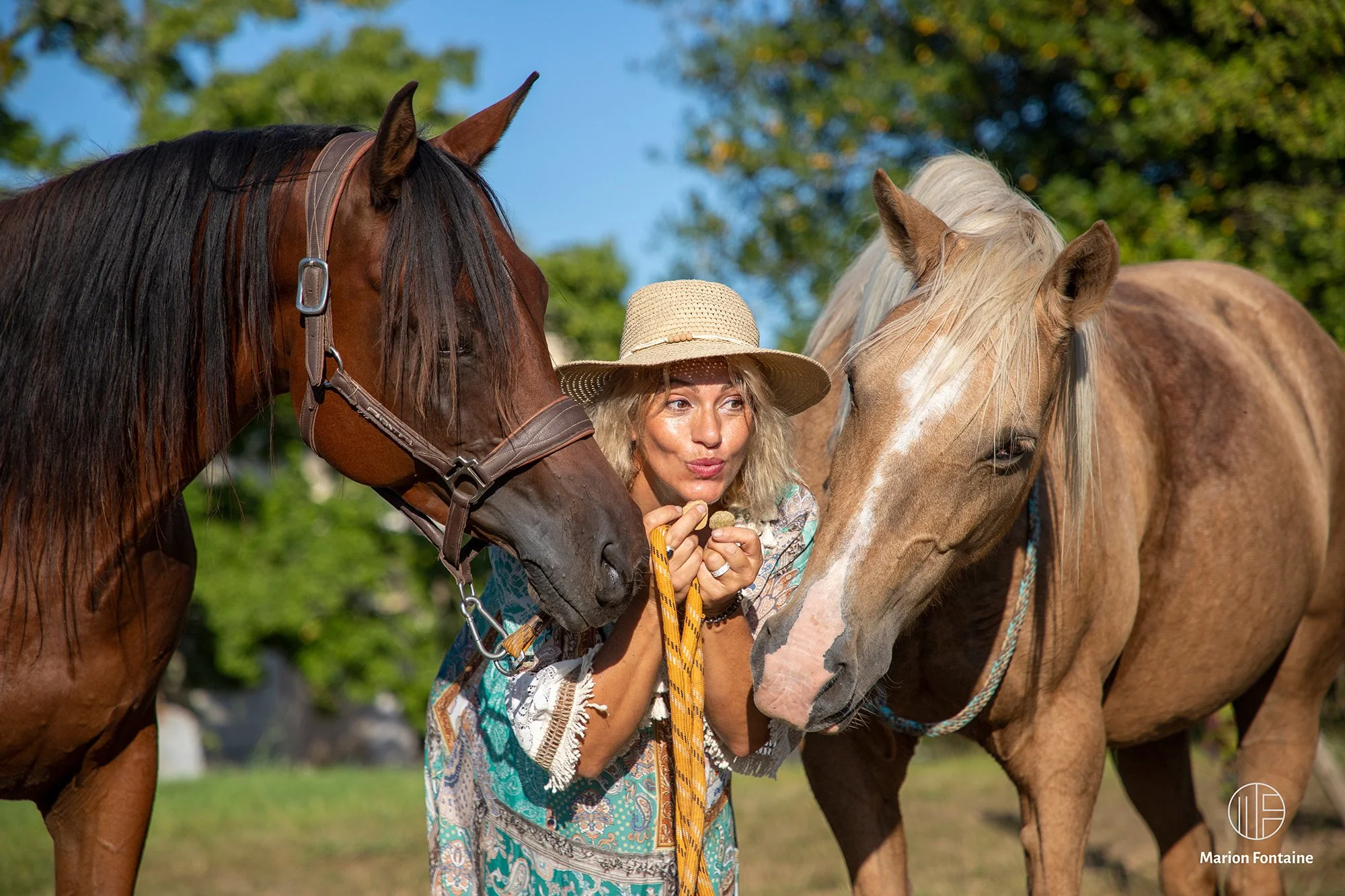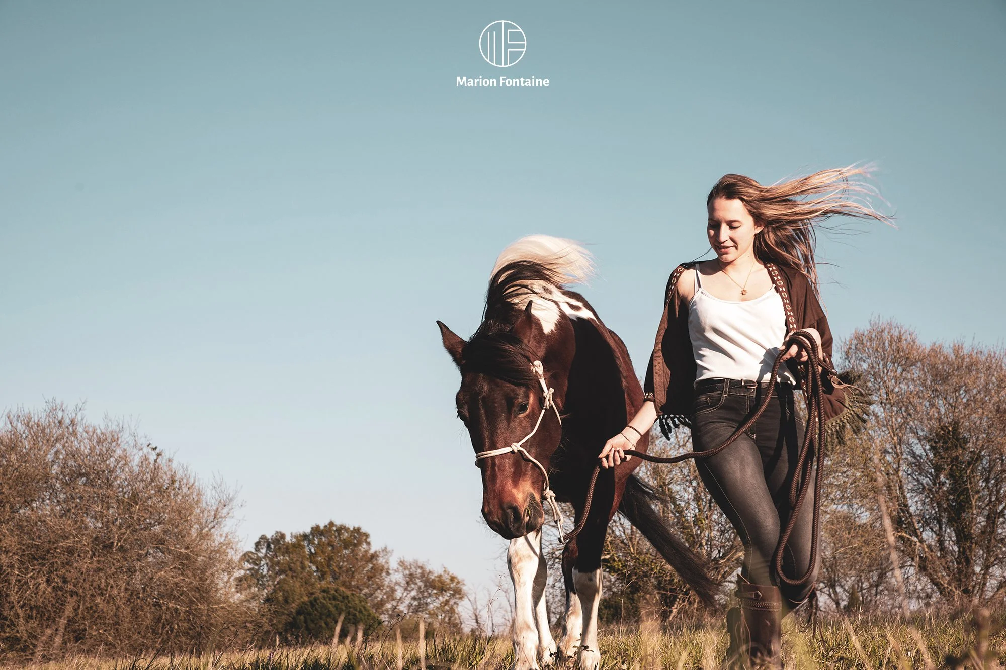 Il est alors possible de faire des shootings lors de séances montées, à pied, en balade, en concours ou encore à la plage. Un licol fin ou en corde sera à privilégier afin de faciliter sa suppression en post-production.